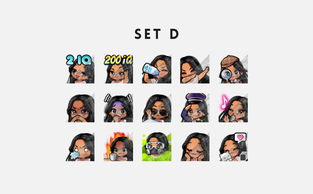 Kindly click the hyperlink of the set or chibi style below or select the color variation you want to purchase. You can also check the cover photos to see what the other emote sets and color variations look like. Thank you!