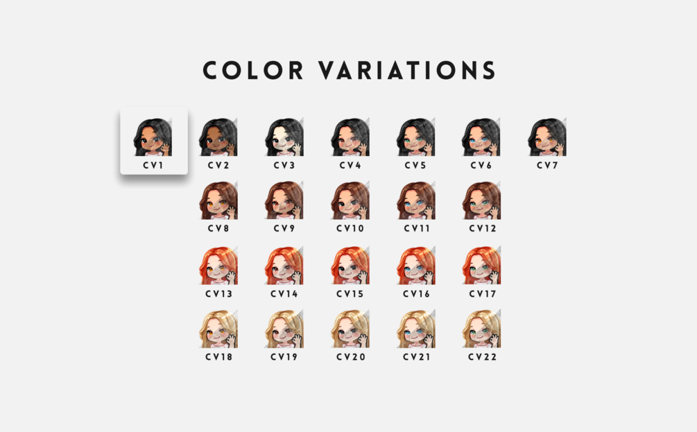 This product listing features 22 color variations of SET A chibi style 1 emotes. You can check the links we have in the decription to see the other chibi styles and sets. We have four sets available [SET A, B, C, D]